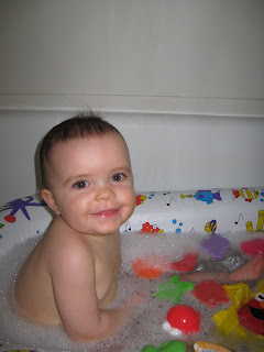 That night, I was on "tub duty" by myself and it was such a positive experience! Sam loved her new tub and the best part is that she reaches for her toys in this tub. In the "big girl tub," if her toys floated away, she wouldn't bother to get them -- reaching was too scary.