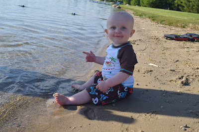 He only ventures into the water about a foot or so ... a little more, if coaxed. And I am grateful for that. The rest of the time, he spends sitting in the sand, playing with beach toys and wandering over to the playground. Next year, he will be in a life-jacket exclusively.