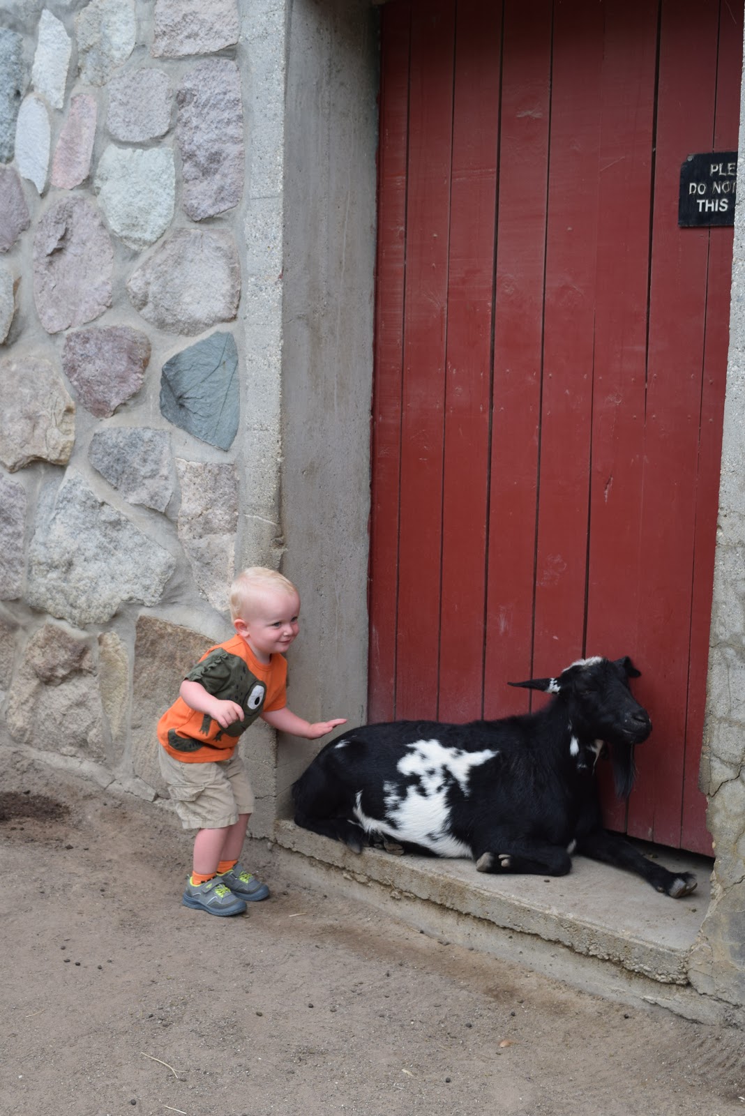 Jimmy was hesitant, but managed to pet the goat with no major incident.