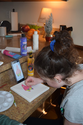 One day, the girls asked me if they could paint on canvases. I have a lot of small ones left over from various birthday parties, so I got those out -- along with my tote of acrylic paint and various brushes.
