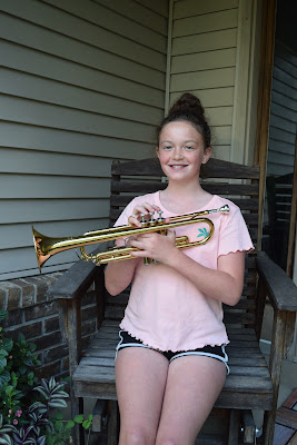 Sophia will be starting 6th grade band this Fall and Steve took her to pick out an instrument. We were secretly hoping that she chose a trumpet because it would be nice to have her older sister (who also plays trumpet) work with her, but we wanted it to be her choice. Ultimately, she chose the trumpet all on her own and she has already begun practicing!